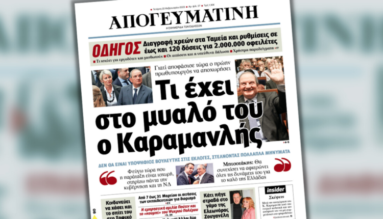 Διαβάστε σήμερα στην «Απογευματινή»: Τι έχει στο μυαλό του ο Καραμανλής – Δεν θα είναι υποψήφιος βουλευτής – Οδηγός διαγραφής χρεών στα Ταμεία