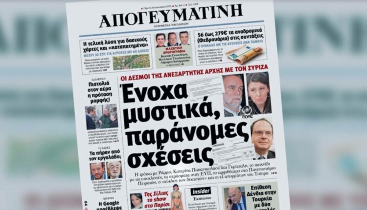 Διαβάστε σήμερα στην εφημερίδα «Απογευματινή»