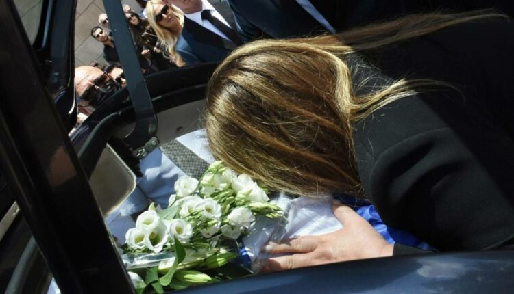 Στο «ύστατο χαίρε» η επιχειρηματίας αγκάλιασε το φέρετρο, το οποίο ήταν τυλιγμένο με την ελληνική σημαία, θέλοντας μέχρι τελευταία στιγμή να είναι κοντά στον άνδρα της ζωής της.
