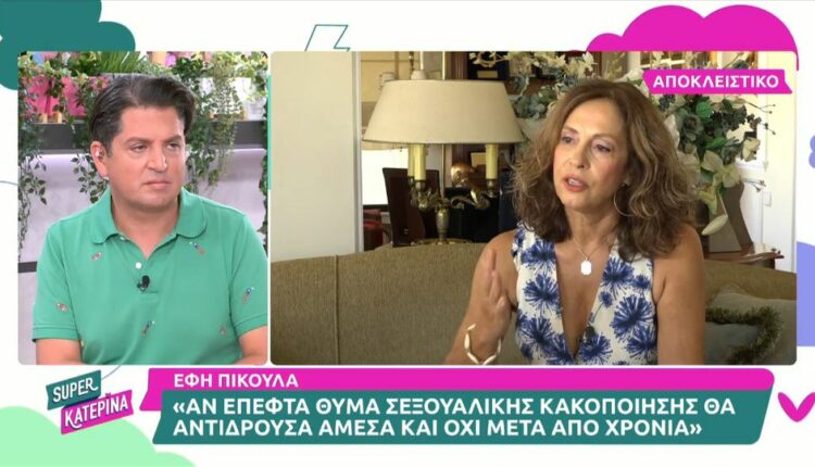 Η Έφη Πίκουλα μιλά για τις πλαστικές επεμβάσεις, τον Τάκη Βουγιουκλάκη αλλά και τις σεξουαλικές παρενοχλήσεις στον χώρο του θεάτρου.