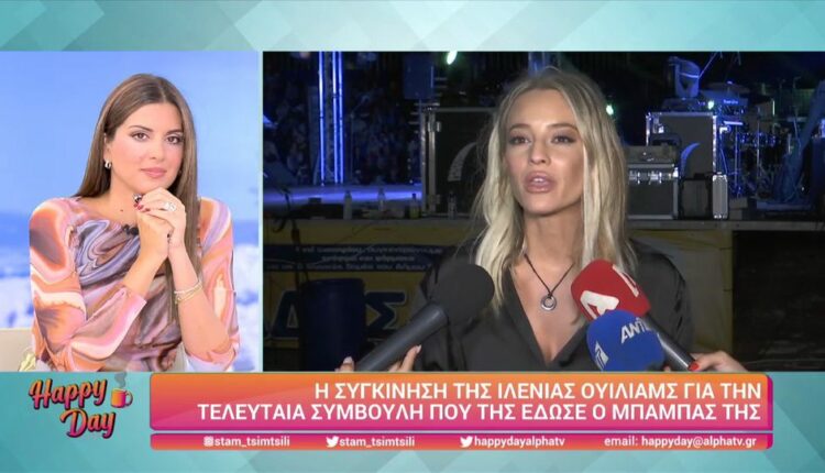 «Με έχει συγκινήσει η αγάπη του κόσμου. Δεν είχα καταλάβει πόσο σημαντικός ήταν ο μπαμπάς μου. Δεν είχε αφήσει να φανεί αυτό μέσα στο σπίτι. Τώρα κατάλαβα πόσο σημαντικός ήταν», είπε αρχικά η Ιλένια Ουίλιαμς σε απόσπασμα που προβλήθηκε στην εκπομπή «Happy Day».