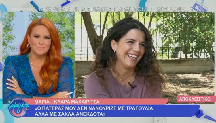 Η Μαρία Κλάρα Μαχαιρίτσα έδωσε συνέντευξη στην εκπομπή «Χαμογέλα και πάλι» λίγες ημέρες πριν από τη συμπλήρωση των τριών χρόνων από τον θάνατο του σπουδαίου τραγουδοποιού. Η κόρη του αείμνηστου Λαυρέντη Μαχαιρίτσα μίλησε για τη σχέση τους και πώς βιώνει την απώλειά του στη ζωή της.