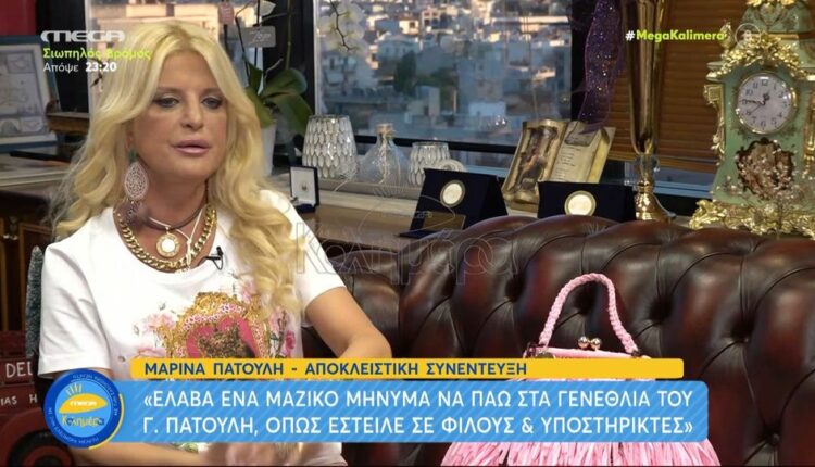 Στην κάμερα της εκπομπής «Mega Καλημέρα» και την Ελένη Μουστάκη μίλησε η Μαρίνα Πατούλη, η οποία απάντησε για τον Γιώργο Πατούλη, αλλά και το λόγο που δεν παρευρέθηκε στα γενέθλιά του.