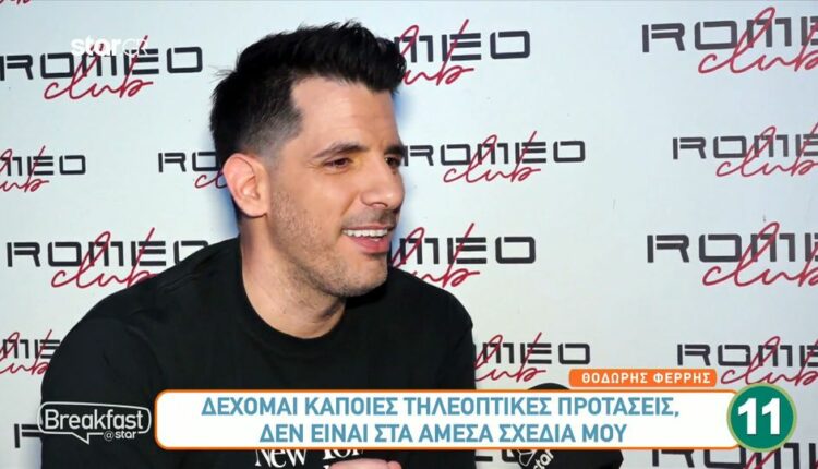 Share Για τις τηλεοπτικές προτάσεις που έχει δεχτεί μίλησε ο τραγουδιστής Θοδωρής Φέρρης. ΤηλεόρασητραγουδιστήςΦέρρης