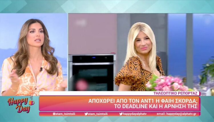 Η Σταματίνα Τσιμτσιλή έδωσε το δικό της ρεπορτάζ στο Happy Day, μετά από επικοινωνία με τη Φαίη Σκορδά: «Επειδή μίλησα με τη Φαίη Σκορδά, αυτό που ήθελε να ακουστεί είναι ότι ξεκίνησε τις συζητήσεις με τον ΑΝΤ1, τον Ιανουάριο και μάλιστα με δική της πρωτοβουλία. Χτύπησε την πόρτα, γιατί είναι πολλά χρόνια εκεί – εκτιμά τη διοίκηση του ΑΝΤ1 και τους ανθρώπους του – και θέλησε να δει πώς θα προχωρήσουν. Στις πρώτες συναντήσεις τον Ιανουάριο, εξέφρασε την επιθυμία να συνεχίσει στον ΑΝΤ1 αλλά να κάνει αυτό που ξέρει κι αγαπά, μία ψυχαγωγική εκπομπή.