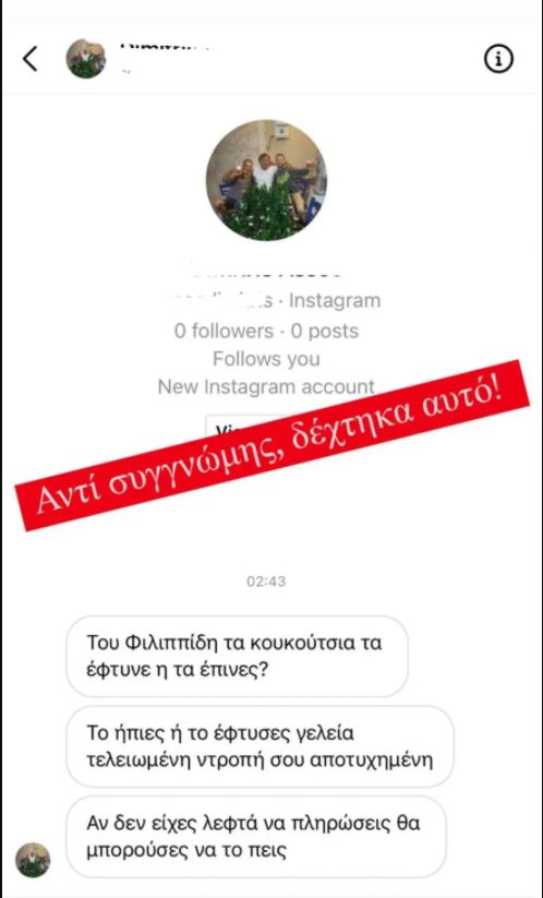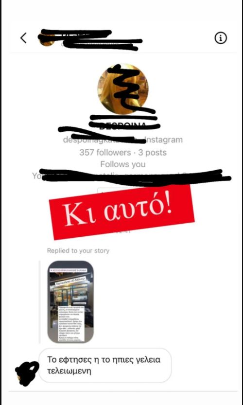 Και ενώ όλοι θα περίμεναν τουλάχιστον ένα συγνώμη για την κακή εξυπηρέτηση του καταστήματος, η γνωστή ηθοποιός δέχθηκε υβριστικά μηνύματα τα οποία μεταξύ άλλων της έλεγαν «του Φιλιππίδη τα κουκούτσια τα έφτυνες ή τα έπινες;» και άλλα σεξιστικά και υποτιμητικά μηνύματα.