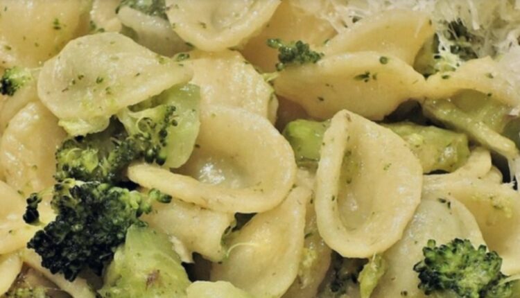 Σε μια κατσαρόλα με αλατισμένα νερό ζεματάμε τα κοχύλια για 2 λεπτά ίσα – ίσα να είναι λίγο μαλακά αλλά όχι και τελείως σκληρά και τα κρατάμε στη άκρη να κρυώσουν.Στη συνέχεια σε μια κατσαρόλα σοτάρουμε τα μισά κρεμμυδάκια και τη μια σκελίδα σκόρδο σε μία κατσαρόλα.Ρίχνετε και το μπρόκολο να τσιγαριστεί και να πιει ελαφρώς τα υγρά του.