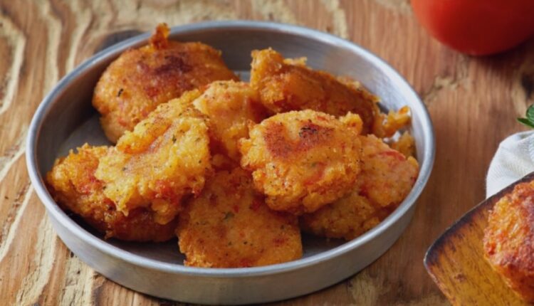 Παίρνουμε κουταλιά – κουταλιά το μείγμα της ντομάτας και το ρίχνουμε με προσοχή στο καυτό λάδι. Τηγανίζουμε τους κεφτέδες σε δυνατή φωτιά μέχρι να πάρουν ένα βαθύ ρόδινο χρώμα και από τις δύο πλευρές.