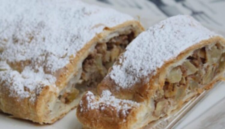 Στρώνετε ένα επίπεδο ταψί με αντικολλητικό χαρτί ψησίματος και τοποθετείτε μέσα το ρολό. Συνεχίζετε να φτιάξετε με τα υπόλοιπα υλικά ένα δεύτερο ρολό, το οποίο τοποθετείτε στο ταψί δίπλα στο πρώτο ρολό. Βάζετε το ταψί στον φούρνο και ψήνετε για περίπου 30-35 λεπτά, μέχρι να ροδοκοκκινίσει το φύλλο. Τα ξεφουρνίζετε και, αφού κρυώσουν λίγο, τα πασπαλίζετε με ζάχαρη άχνη και λίγη κανέλα ή κακάο.Το σερβίρετε χλιαρό ή κρύο, κόβοντας σε φέτες.