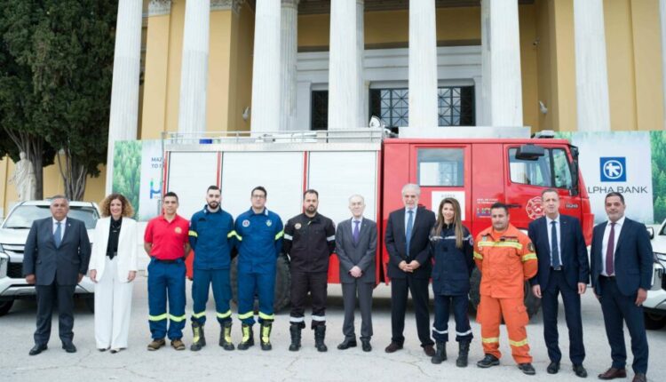 Σε ειδική εκδήλωση που έλαβε χώρα την Τετάρτη στον προαύλιο χώρο του Ζαππείου Μεγάρου, παρουσία του υπουργού Κλιματικής Κρίσης και Πολιτικής Προστασίας Χρήστου Στυλιανίδη, ο πρόεδρος του Διοικητικού Συμβουλίου της Alpha Bank Βασίλειος Ράπανος, παρέδωσε 6 πυροσβεστικά οχήματα, ενισχύοντας τον στόλο οχημάτων των Συλλόγων Εθελοντικών Δυνάμεων Δασοπροστασίας & Διάσωσης Προκοπίου και Καρύστου Ευβοίας, του Εθελοντικού Συλλόγου Πυροπροστασίας Δασών Λουτρακίου – Περαχώρας, της Ομάδας Αντιμετώπισης Καταστροφών 4×4 Μεσσηνίας, των Εθελοντικών Δυνάμεων Δασοπυρόσβεσης & Διάσωσης / Κλιμάκιο Ροδόπολης Αττικής και της Εθελοντικής Ομάδας Καπανδριτίου Πολυδενδρίου Αττικής.