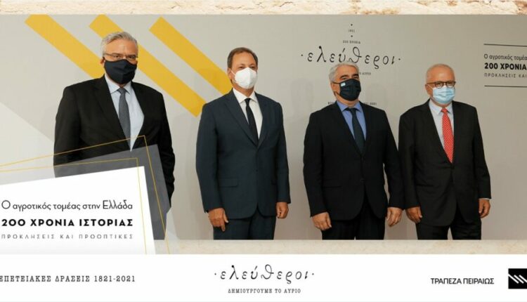 Στο πλαίσιο των επετειακών της δράσεων, για τα 200 χρόνια από την Ελληνική Επανάσταση, η Τράπεζα Πειραιώς παρουσίασε, τη Δευτέρα 4 Οκτωβρίου 2021, στο Κέντρο Πολιτισμού ‘Ιδρυμα Σταύρος Νιάρχος, την ειδική έκδοση: «Ο αγροτικός τομέας στην Ελλάδα: 200 χρόνια ιστορίας Προκλήσεις & προοπτικές». Η έκδοση συντάχθηκε υπό την επίβλεψη του κ. Σέρκου Χαρουτουνιάν, Καθηγητή του Γεωπονικού Πανεπιστημίου Αθηνών & Προέδρου του ΕΛΓΟ ΔΗΜΗΤΡΑ, σε συνεργασία με τους Καθηγητές – ερευνητές του Γεωπονικού Πανεπιστημίου Αθηνών κ.κ. Κωνσταντίνο Τσιμπούκα, Δημήτρη Παναγιωτόπουλο και Ελευθέριο Νέλλα.