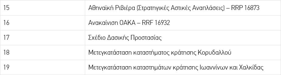 Πρόκειται για έργα που θα ξεκινήσουν με τη φροντίδα της Μονάδας Προετοιμασίας Έργων (PPF) του ΤΑΙΠΕΔ, με πρώτα από αυτά την εκκαθάριση 35 δρυμών της χώρα από καύσιμη ύλη και τη συντήρηση του ΟΑΚΑ.