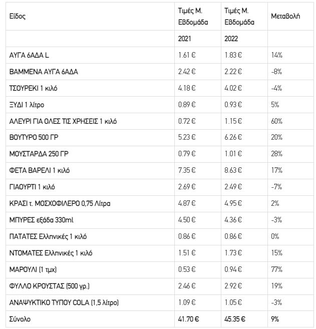 Σύγκριση τιμών τυπικού καλαθιού Πάσχα 2021-2022