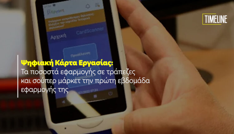 Με αφορμή τη συμπλήρωση μιας εβδομάδας από την έναρξη εφαρμογής της Ψηφιακής Κάρτας Εργασίας στις τράπεζες και τα σούπερ μάρκετ για περισσότερους από 250 εργαζόμενους, το υπουργείο Εργασίας και Κοινωνικών Υποθέσεων ανακοίνωσε τα αποτελέσματα της χρήσης της από τις επιχειρήσεις και τους εργαζόμενους στους εν λόγω κλάδους μέχρι και την Πέμπτη 7 Ιουλίου.