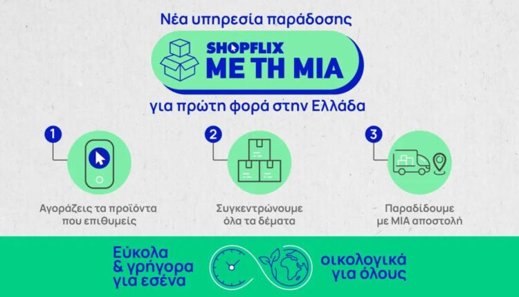 Τώρα, και για πρώτη φορά στην Ελλάδα, το SHOPFLIX.gr δημιουργεί τη νέα υπηρεσία παράδοσης «SHOPFLIX ΜΕ ΤΗ ΜΙΑ» με πολλαπλά οφέλη για τον πελάτη, αλλά και το περιβάλλον. Πιο συγκεκριμένα, αναβαθμίζει ακόμα περισσότερο τη διαδικασία αγοράς, προσφέροντας τη δυνατότητα στον καταναλωτή να παραλαμβάνει ολόκληρη την παραγγελία του ΜΕ ΤΗ ΜΙΑ, και όχι σε διαφορετικές παραδόσεις, κερδίζοντας πολύτιμο χρόνο και ευκολία.