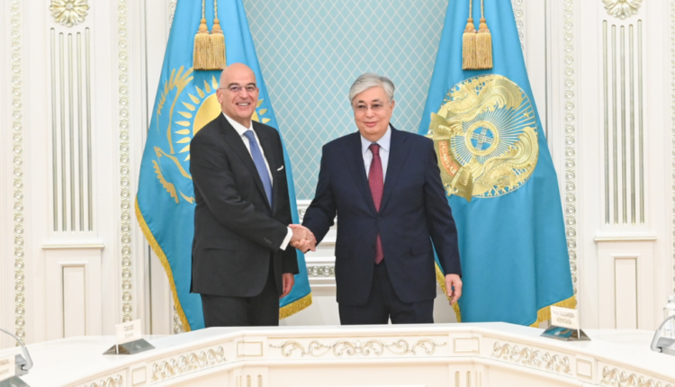 Ξεκινώντας την επίσκεψή του στην Αστάνα, ο υπουργός Εξωτερικών έγινε δεκτός από τον πρόεδρο του Καζακστάν Κασίμ-Ζομάρτ Τοκάγιεφ (Kassym-Jomart Tokayev).