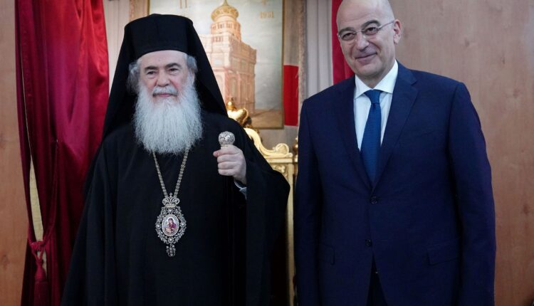 Συνάντηση με τον Πατριάρχη Ιεροσολύμων πραγματοποίησε ο Έλληνας υπουργός Εξωτερικών Νίκος Δένδιας, ο οποίος πραγματοποιεί επίσκεψη στο Ισραήλ και τα Παλαιστινιακά Eδάφη.