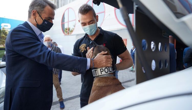 Ο πρωθυπουργός συνάντησε στο Βελλίδειο τον Judge, έναν αστυνομικό σκύλο ανίχνευσης εκρηκτικών υλών ο οποίος έχει αναλάβει τον έλεγχο όλων των χώρων από όπου θα περάσει ο πρωθυπουργός κατά τη διάρκεια της παραμονής του στη Θεσσαλονίκη.