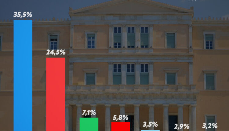 Σε μια δύσκολη για τον τόπο και την κυβέρνηση συγκυρία, με την πανδημία να παραμένει βραχνάς, αλλά και την ακρίβεια να προκαλεί μεγάλες αβεβαιότητες στους πολίτες, η ΝΔ με 35,5% διατηρεί προβάδισμα 11 ποσοστιαίων μονάδων έναντι του ΣΥΡΙΖΑ (24,5%) στην πρόθεση ψήφου.