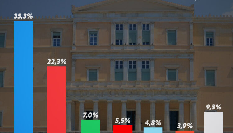 Η διαφορά της ΝΔ από τον ΣΥΡΙΖΑ στην πρόθεση ψήφου είναι στο 13%.