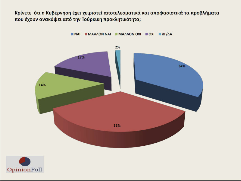Τους συνολικούς χειρισμούς της στα Ελληνοτουρκικά αποδέχεται το 67 %, στην περίπτωση του κορωνοιού το 70% και στην διαχείριση της οικονομικής κρίσης το 48%.