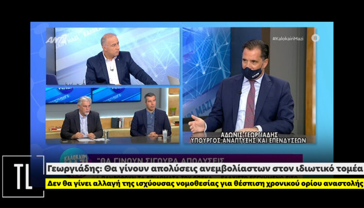 «Η κείμενη νομοθεσία καλύπτει τις επιχειρήσεις που κρίνουν ότι εργαζόμενος που αρνείται να εμβολιαστεί εμποδίζει την λειτουργία της επιχείρησης. Αν μπορεί να γίνει με τηλεργασία, το δικαστήριο θα κρίνει ότι δεν δικαιολογείται η απόλυση. Αν δεν μπορεί να γίνει με τηλεργασία, το δικαστήριο θα κρίνει ότι δικαιολογείται», είπε ο υπουργός Ανάπτυξης και Επενδύσεων ‘Αδωνις Γεωργιάδης μιλώντας στον τηλεοπτικό σταθμό ΑΝΤ1, συμπληρώνοντας ότι «θα γίνουν σίγουρα απολύσεις, όταν υπάρχει περίπτωση η επιχείρηση να καταστραφεί».