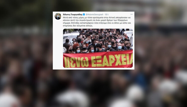 «Μετά από τόσες μέρες με τόσα κρούσματα στην Αττική αποφάσισαν να κάνουν αυτή την συγκέντρωση σε έναν μικρό δρόμο των Εξαρχείων σήμερα. Επίτηδες καταστρέφουν όσα κτίζουμε όλοι οι άλλοι με κόπο και στερήσεις δεν εξηγείται αλλιώς».