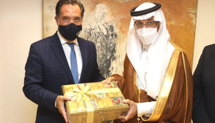 Η δυναμική που υπάρχει για την επιχειρηματική συνεργασία μεταξύ Ελλάδας και Σαουδικής Αραβίας, επισημάνθηκε στην συνάντηση που είχε σήμερα ο υπουργός Ανάπτυξης και Επενδύσεων, ‘Αδωνις Γεωργιάδης, με τον υπουργό Επενδύσεων της Σαουδικής Αραβίας, Khalid bin Abdulaziz Al-Falih, παρουσία του αναπληρωτή υπουργού, Νίκου Παπαθανάση, των υφυπουργών, Χρίστου Δήμα και Γιάννη Τσακίρη και του γενικού γραμματέα Ιδιωτικών Επενδύσεων ΣΔΙΤ, Ορέστη Καβαλάκη.