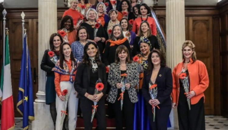 Στον απόηχο των εορτασμών της Παγκόσμιας Ημέρας για την Εξάλειψη της Βίας κατά των Γυναικών και τής σε εξέλιξη εκστρατείας των Ηνωμένων Εθνών για τις γυναίκες «Orange the World: Τέλος στη Βία κατά των Γυναικών τώρα!», η πρέσβης της Ιταλίας στην Ελλάδα, Πατρίτσια Φαλτσινέλι (Patrizia Falcinelli), παρέθεσε σήμερα στην πρεσβευτική κατοικία ένα γεύμα για τις γυναίκες πρέσβεις, στο οποίο συμμετείχε ως επίτιμη προσκεκλημένη, η Πρόεδρος της Ελληνικής Δημοκρατίας Κατερίνα Σακελλαροπούλου.
