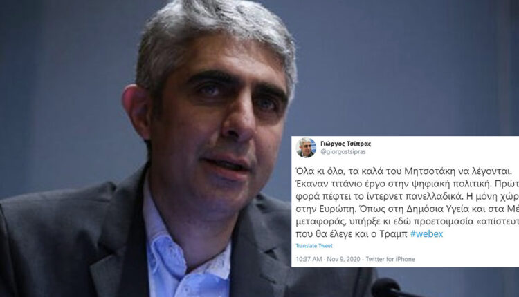 “Όλα κι όλα, τα καλά του Μητσοτάκη να λέγονται. Έκαναν τιτάνιο έργο στην ψηφιακή πολιτική. Πρώτη φορά πέφτει το ίντερνετ πανελλαδικά. Η μόνη χώρα στην Ευρώπη. Όπως στη Δημόσια Υγεία και στα Μέσα μεταφοράς, υπήρξε κι εδώ προετοιμασία «απίστευτη», που θα έλεγε και ο Τραμπ #webex