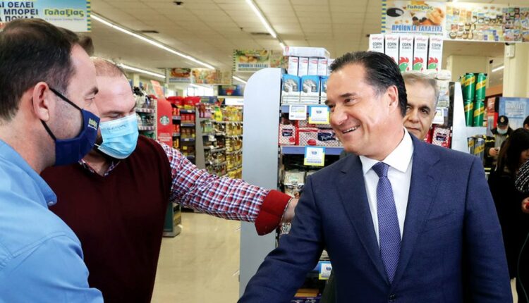 Ο υπουργός, Άδωνις Γεωργιάδης, o αναπληρωτής υπουργός, Νίκος Παπαθανάσης και ο γενικός γραμματέας Εμπορίου και Προστασίας του Καταναλωτή, Σωτήρης Αναγνωστόπουλος, επισκέφθηκαν σήμερα, δύο καταστήματα των αλυσίδων σούπερ μάρκετ «Bazaar» και «Γαλαξίας», καθώς την εβδομάδα που πέρασε κατέγραψαν τη μεγαλύτερη μείωση στις τιμές των προϊόντων του «καλαθιού του νοικοκυριού».