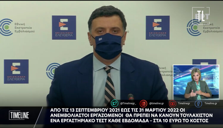 2. Από τις 13/9 οι ανεμβολίαστοι εργαζόμενοι σε δημόσιο και ιδιωτικό τομέα θα πρέπει να κάνουν ένα εργαστηριακό τεστ κάθε εβδομάδα – Στα 10 ευρώ το κόστος