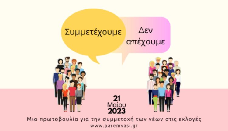Την πρωτοβουλία «Συμμετέχουμε Δεν Απέχουμε» για να παρακινήσει τους νέους να συμμετέχουν στις εκλογές ξεκινά η Παρέμβαση Νέων (#παρεμβαση_στις_εκλογες). Στο πλαίσιο αυτής της πρωτοβουλίας θα πραγματοποιηθούν μια σειρά εκδηλώσεων σε Αθήνα, Θεσσαλονίκη, Πάτρα, Ηράκλειο και Άρτα με φοιτητικούς και νεανικούς συλλόγους για να αναδειχθεί η αξία της συμμετοχής.