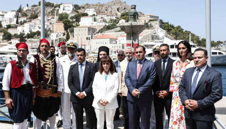 Στη συνέχεια η Πρόεδρος της Δημοκρατίας ξεναγήθηκε στο Ιστορικό Αρχείο – Μουσείο της Ύδρας και ολοκλήρωσε την επίσκεψή της στο νησί με τη ρίψη στεφάνου στη θάλασσα προς τιμήν των ναυμάχων του 1821.