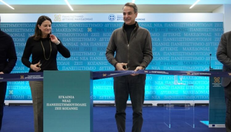 «Επιτέλους, η Δυτική Μακεδονία αποκτά το Πανεπιστήμιο που της αξίζει», επισήμανε ο πρωθυπουργός Κυριάκος Μητσοτάκης κατά τον χαιρετισμό του στην τελετή εγκαινίων της νέας πανεπιστημιούπολης Δυτικής Μακεδονίας, στη Ζώνη Ενεργού Πολεοδομίας (ΖΕΠ), της Κοζάνης.
