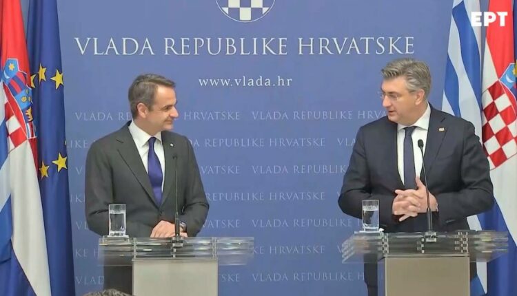 Ολοκληρώθηκαν οι κοινές δηλώσεις του Κυριάκου Μητσοτάκη με τον Κροάτη πρωθυπουργό Αντρέι Πλένκοβιτς στο Ζάγκρεμπ όπου και βρίσκεται ο Έλληνας πρωθυπουργός για επίσημη επίσκεψη.