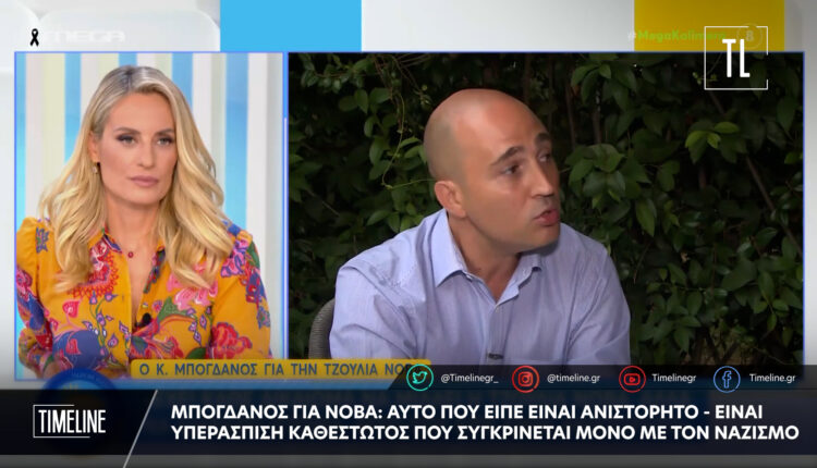 «Τα σχόλια στο Instagram της Τζούλιας Νόβα τα θεωρώ απαράδεκτα. Δε θεωρώ ότι μία γυναίκα επειδή είναι όμορφη, μπορεί κάποιος να της απαγορεύσει να μιλάει», τόνισε ο Κωνσταντίνος Μπογδάνος.