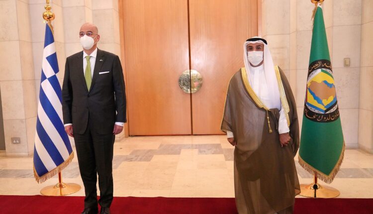 Η επίσκεψη των δύο υπουργών άρχισε με τη συνάντησή τους με τον γενικό γραμματέα του Συμβουλίου Συνεργασίας του Κόλπου Ναγιέφ μπιν Φάλαχ αλ Χαζράφ. Στο επίκεντρο της συνάντησης βρέθηκαν οι στενοί δεσμοί και η διαρκώς ενισχυόμενη συνεργασία της Ελλάδας με τις χώρες του Κόλπου, καθώς και οι πρόσφατες εξελίξεις στην ευρύτερη περιοχή, σύμφωνα με σχετική ανάρτηση του υπουργείου Εξωτερικών στο twitter. Στη συνέχεια ο υπουργός Εξωτερικών και ο γγ του Συμβουλίου Συνεργασίας του Κόλπου υπέγραψαν μνημόνιο κατανόησης για τη θεσμοθέτηση διαβουλεύσεων σε θέματα κοινού ενδιαφέροντος.