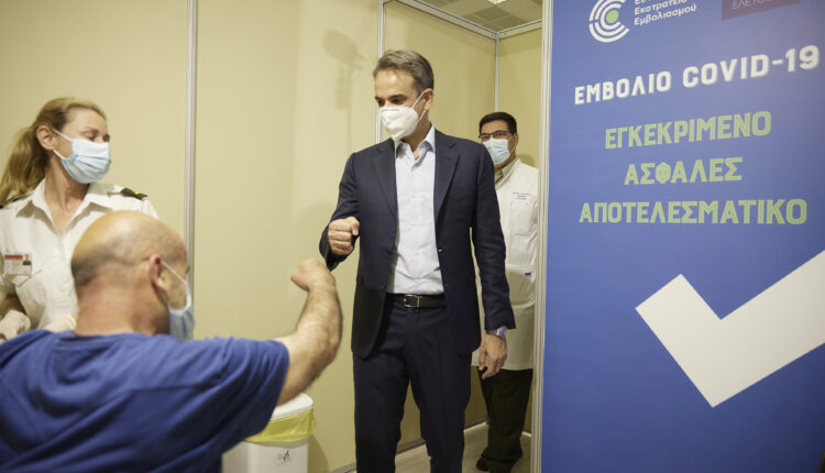 «Να στέλνουμε το μήνυμα και στους υγειονομικούς ότι όλοι πρέπει να εμβολιαστούν, εσείς πρέπει να το λέτε πρώτοι και δυνατά», σημείωσε ο Κυριάκος Μητσοτάκης. «Πάντα, πρέπει, βέβαια», του απάντησε εκείνη.