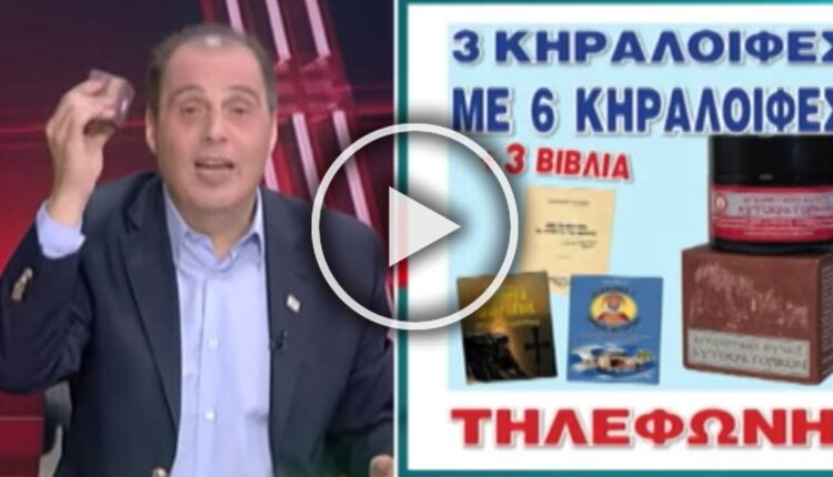 Ο Κυριάκος Βελόπουλος, εν ενεργεία πολιτικός αρχηγός (επικεφαλής της Ελληνικής Λύσης), λανσάρει ένα προϊόν που μπορεί, όπως ισχυρίζεται ο ίδιος, να προστατεύσει από τον κορωνοϊό!