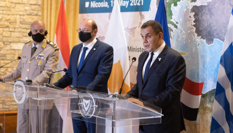 Κατά τη συνάντησή τους, οι Υπουργοί Άμυνας επαναβεβαίωσαν τους ισχυρούς δεσμούς της Ελλάδος, της Κύπρου και της Αιγύπτου, οι οποίοι εδράζονται σε κοινές αρχές και το κοινό όραμα της δημιουργίας ενός περιβάλλοντος σταθερότητας, ασφάλειας και ευημερίας στην ευρύτερη περιοχή της Ανατολικής Μεσογείου, και την απόφασή τους να ενισχύσουν περαιτέρω την συνεργασία για αντιμετώπιση οιασδήποτε απειλής.