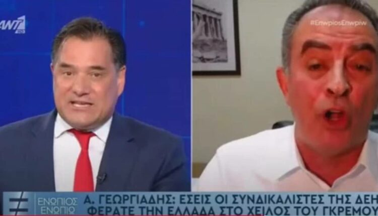 Άγριος καυγάς μεταξύ του υπουργού Ανάπτυξης και Επενδύσεων, Άδωνι Γεωργιάδη, και του προέδρου της ΓΕΝΟΠ ΔΕΗ, Γιώργου Αδαμίδη, ξέσπασε το βράδυ της Πέμπτης στον «αέρα» του ΑΝΤ1.