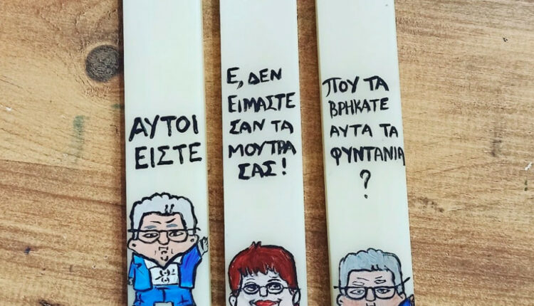 Το εργαστήρι έφτιαξε λαμπάδες με τον Δημήτρη Κουτσούμπα και με ατάκες του που «έγραψαν» όπως το «αυτοί είστε», «που τα βρήκατε αυτά τα φυντάνια» κλπ και τελικά οι λαμπάδες γίνανε ανάρπαστες.