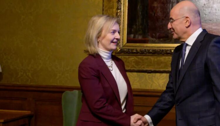 Με την Βρετανίδα υπουργό Εξωτερικών Λιζ Τρας, συναντήθηκε χθες Δευτέρα στο Λονδίνο ο Έλληνας υπουργός Εξωτερικών, Νίκος Δένδιας.