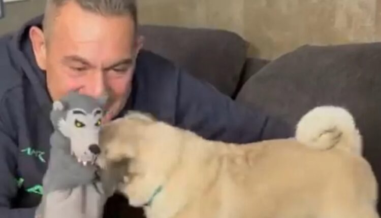 Ο σκύλος στη συνέχεια… ορμά στην κούκλα και ο κ. Καμμένος ξεσπά σε γέλια.