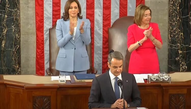 «Στο ελληνικό κοινοβούλιο δεν με χειροκροτούν τόσο» είπε χαρακτηριστικά, ενώπιον των εκπροσώπων του αμερικανικού λαού, και υπό το βλέμμα της αντιπροέδρου των Ηνωμένων Πολιτειών, Κάμαλα Χάρις, και της προέδρου της Βουλής των Αντιπροσώπων, Νάνσι Πελόζι.