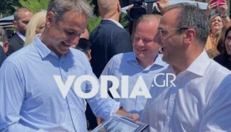 Όπως αναφέρει η τοπική ιστοσελίδα voria.gr, ο δήμαρχος έδωσε στον πρωθυπουργό μια κορνίζα από τα μέσα της δεκαετίας του 1970 όταν ο 8χρονος Κυριάκος Μητσοτάκης έδινε το χέρι στον τότε πρωθυπουργό Κωνσταντίνο Καραμανλή.