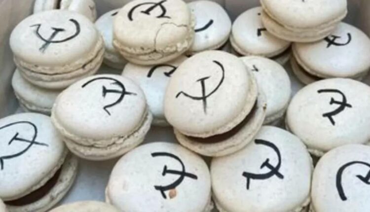 Την περασμένη Τρίτη, λοιπόν, έφερε, λευκά μακαρόν, τα οποία είχαν επάνω ένα μαύρο σφυροδρέπανο.