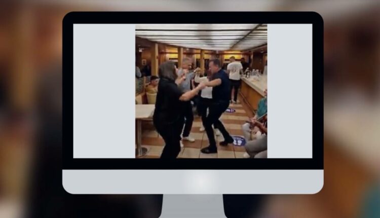 Οι δύο άνδρες χόρεψαν νησιώτικους χορούς, με τον κόσμο να τους χειροκροτεί και να γίνεται το ταξίδι πιο διασκεδαστικό.