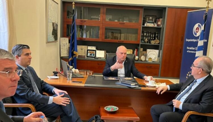 Λίγο πριν τις 10 το πρωί, ο υπουργός Περιβάλλοντος και Ενέργειας, Κώστας Σκρέκας, ο αναπληρωτής υπουργός Ανάπτυξης και Επενδύσεων, Νίκος Παπαθανάσης και ο υφυπουργός Έρευνας και Τεχνολογίας, Χρίστος Δήμας κατέφθασαν στο Επιμελητήριο Ηρακλείου. Εκεί είχαν σύντομη συνάντηση με τον πρόεδρο του Επιμελητηρίου Ηρακλείου και συμμετείχαν σε σύσκεψη με επιχειρηματικούς φορείς για θέματα Οικονομίας.